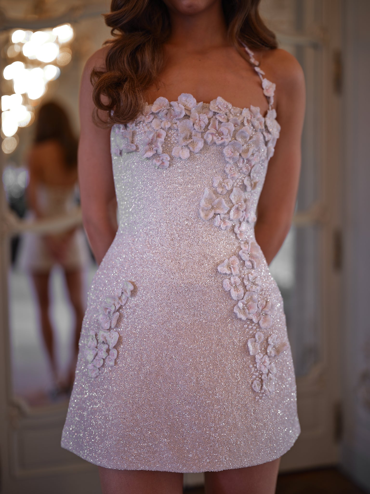 Built over our signature corsetry base, Delilah requires over 130 hours of skilled artisan work. Each tiny bead is individually hand placed to create a seamless ombré fade from pure white to soft blush pink - a subtle touch of color designed for the modern bride. Delilah’s floral appliqué is a feat of craftsmanship: every petal is hand formed, embellished, and then assembled into dimensional flowers that cascade gracefully down the dress. The halter-style strap continues the theme, adorned with hand-beaded florals that frame the neckline and echo the flow of the design. A lace-up back ensures adjustability and a perfectly sculpted silhouette.